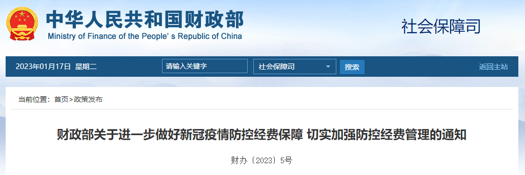 1月16日,國家財政部發(fā)布《關(guān)于進一步做好新冠疫情防控經(jīng)費保障 切實加強防控經(jīng)費管理的通知》(以下簡稱《通知》)。