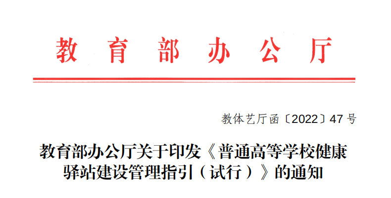 近日,教育部辦公廳印發(fā)了關(guān)于《普通高等學(xué)校健康驛站建設(shè)管理指引(試行)》的通知(以下簡稱《指引》),以此進一步引導(dǎo)規(guī)范高等學(xué)校健康驛站建設(shè)。