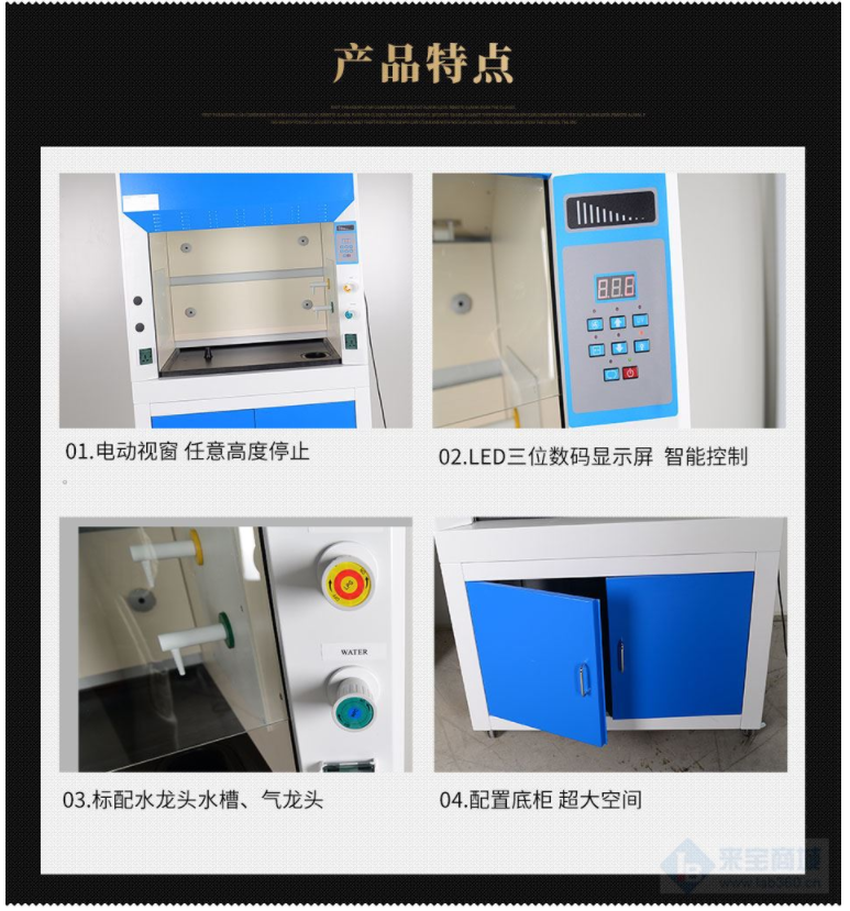 * 8、通風(fēng)柜配置底柜,底柜采用1.0mm冷軋鋼板經(jīng)防銹處理,靜電噴涂,具有較好的光潔度與耐腐蝕性;底柜1700*730*605mm(L×D×H)的超大空間可以放置實(shí)驗(yàn)室用品;底柜與上柜體配套使通風(fēng)柜更加美觀實(shí)用。