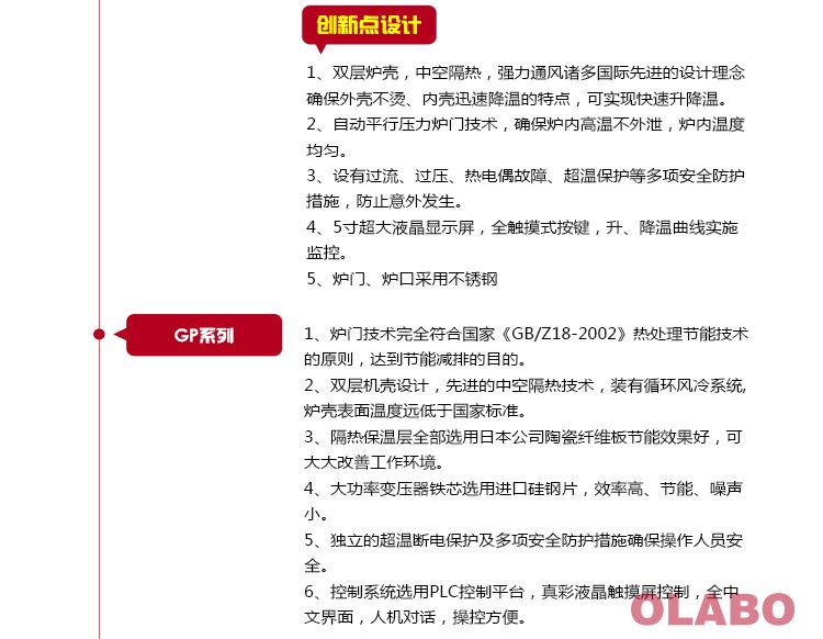 3、安全保障措施:本系列電阻爐設有過壓、過流、爐體表面過熱保護保護開關。另設防止供電線路停電恢復后,在無人值守情況下電阻爐繼續(xù)加熱功能;及開啟爐門后,爐膛停止供電裝置。